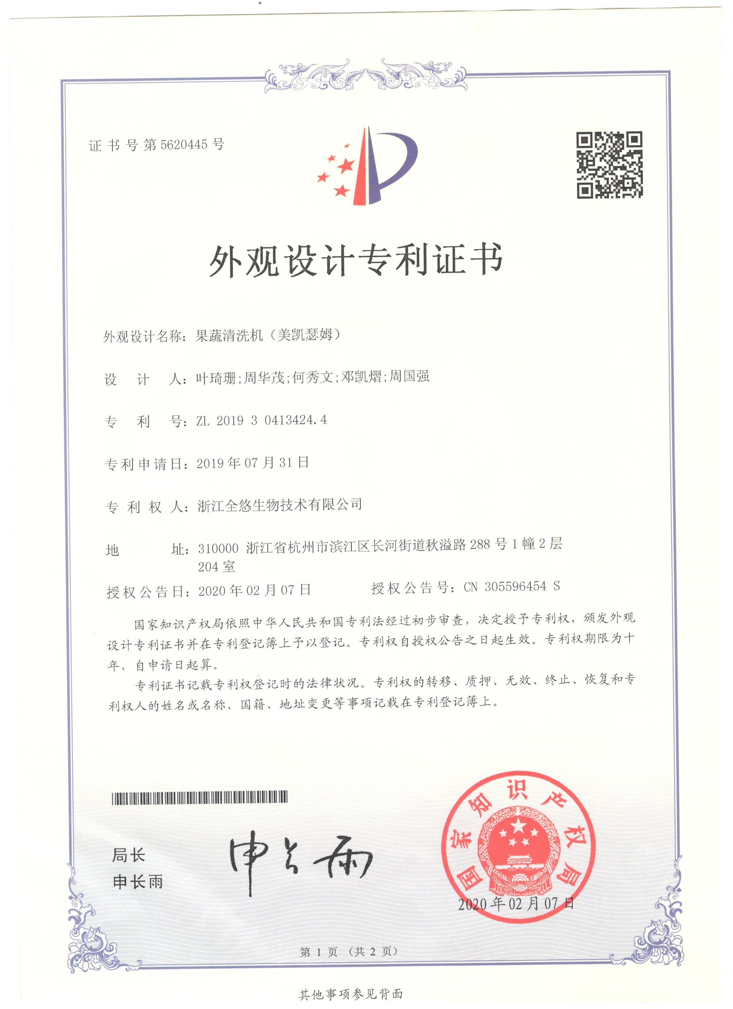 外观专利证书